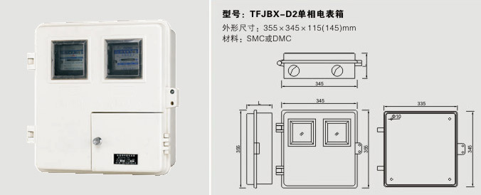 该系列电表箱玻璃钢制成(SMC或DMC材料).该材料具有防火、耐腐蚀,绝缘和抗压的性能。电表箱可以安装在墙上或者电线杆上。既适用于电子表又适用于机械表,用户也可以在电表箱内安装开关,熔断器和接线盒等。