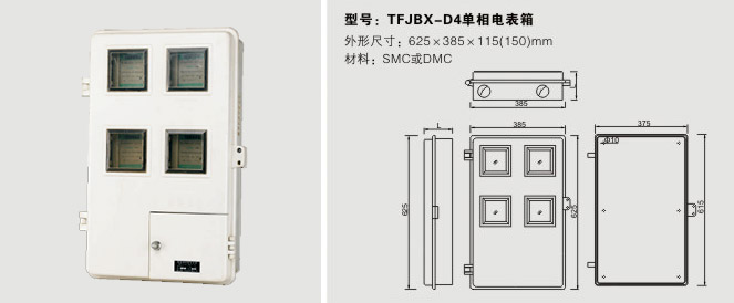 该系列电表箱玻璃钢制成(SMC或DMC材料).该材料具有防火、耐腐蚀,绝缘和抗压的性能。电表箱可以安装在墙上或者电线杆上。既适用于电子表又适用于机械表,用户也可以在电表箱内安装开关,熔断器和接线盒等。