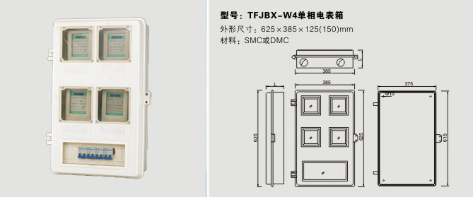 该系列电表箱玻璃钢制成(SMC或DMC材料).该材料具有防火、耐腐蚀,绝缘和抗压的性能。电表箱可以安装在墙上或者电线杆上。既适用于电子表又适用于机械表,用户也可以在电表箱内安装开关,熔断器和接线盒等。