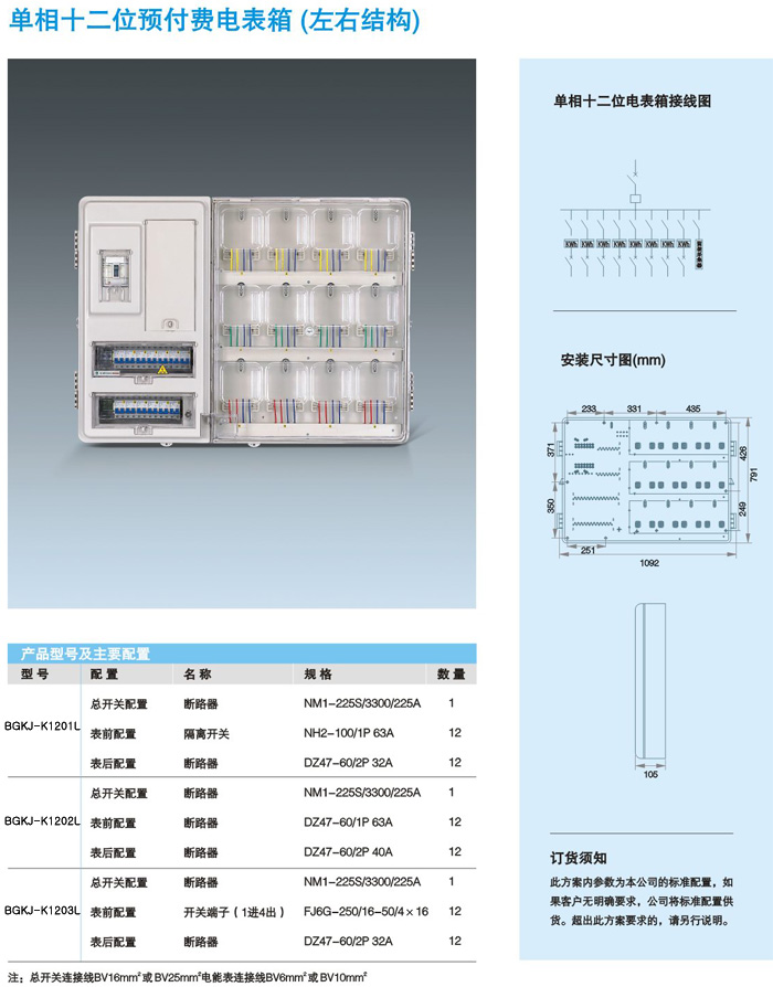 单相十二位预付费电表箱(左右结构)