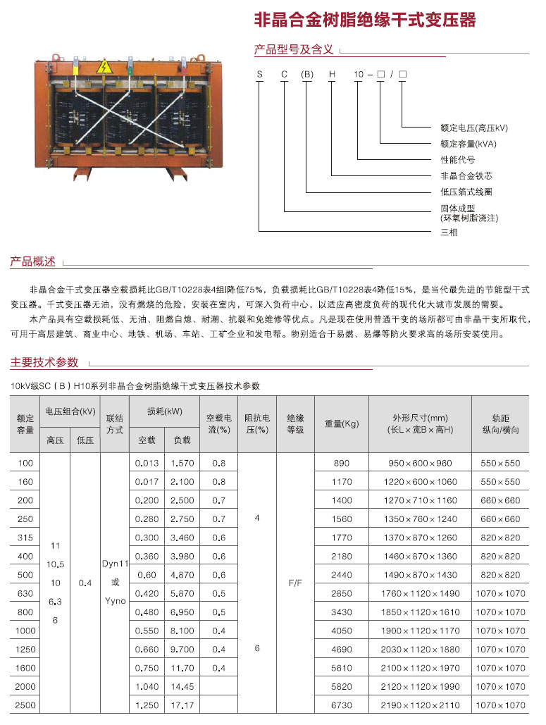 非晶合金树脂绝缘干式变压器