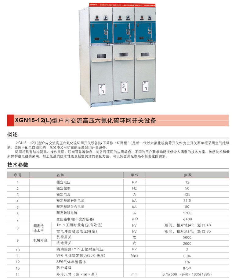 XGN15-12(L)型户内交流高压六氟化硫环网开关设备