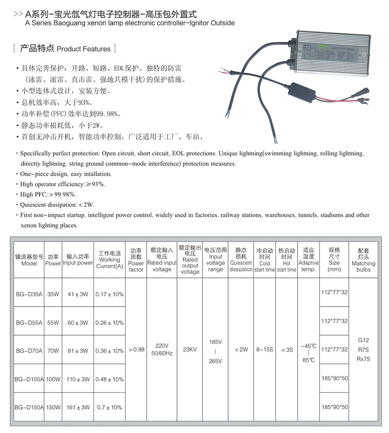 A系列-宝光氙气灯电子控制器-高压包外置式